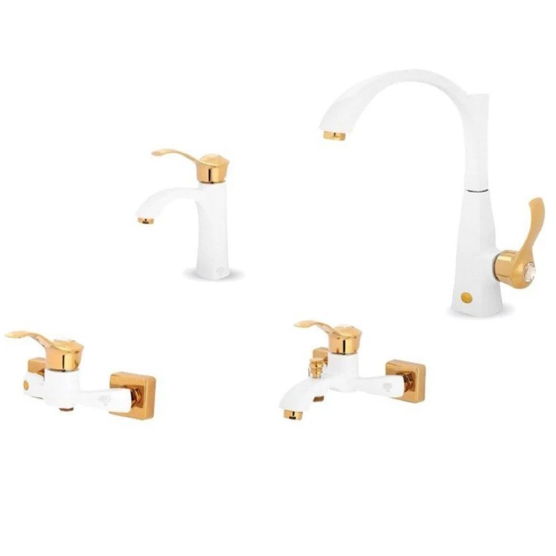 ست 4 تایی شیرآلات ایران گروه مدل ویسنتین سفید طلایی (7 سال گارانتی)(پس کرایه)