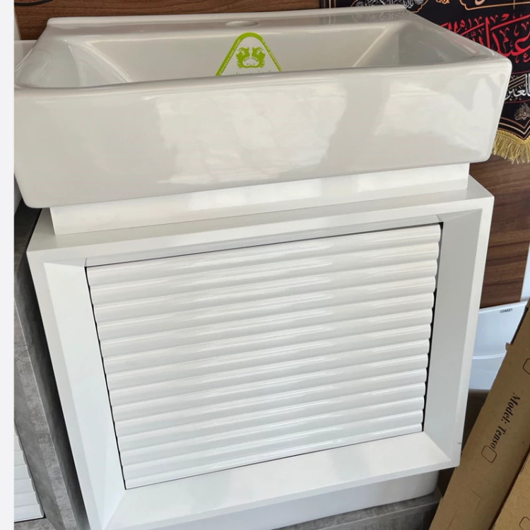 روشویی کابینتی pvc سفید سایز 45 در 31 با سنگ پارس سرام ( پس کرایه)