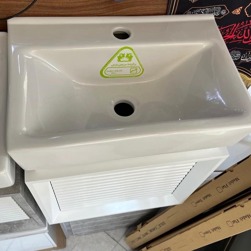 روشویی کابینتی pvc سفید سایز 45 در 31 با سنگ پارس سرام ( پس کرایه)