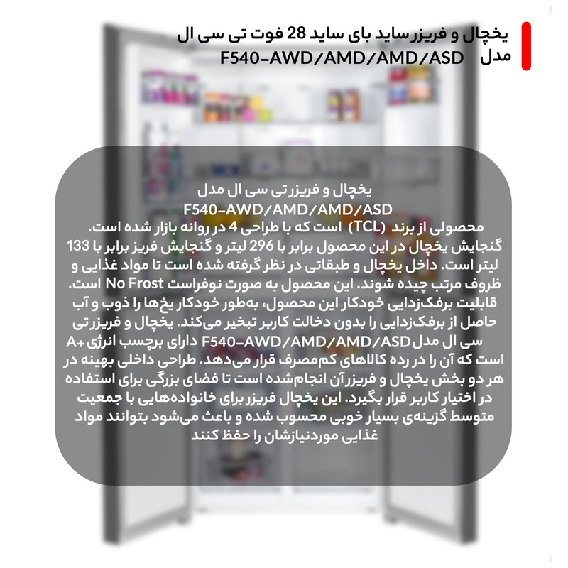 یخچال و فریزر ساید بای ساید 28 فوت تی سی ال مدل F540-AWD/AMD/AMD/ASD