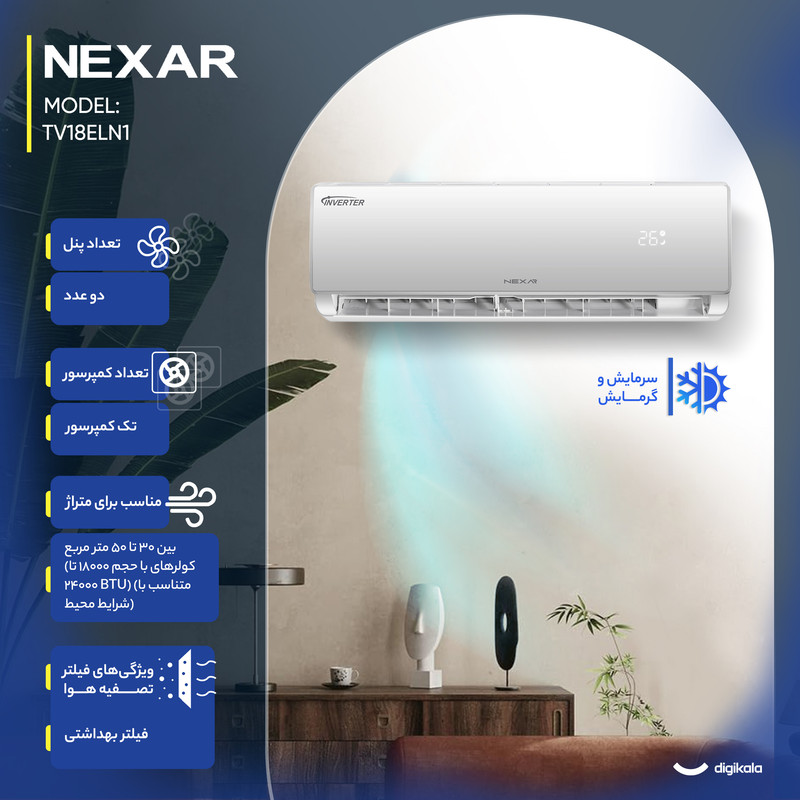 کولر گازی اسپلیت دیواری (Split) 18000 اینورتر نکسار مدل TV18ELN1