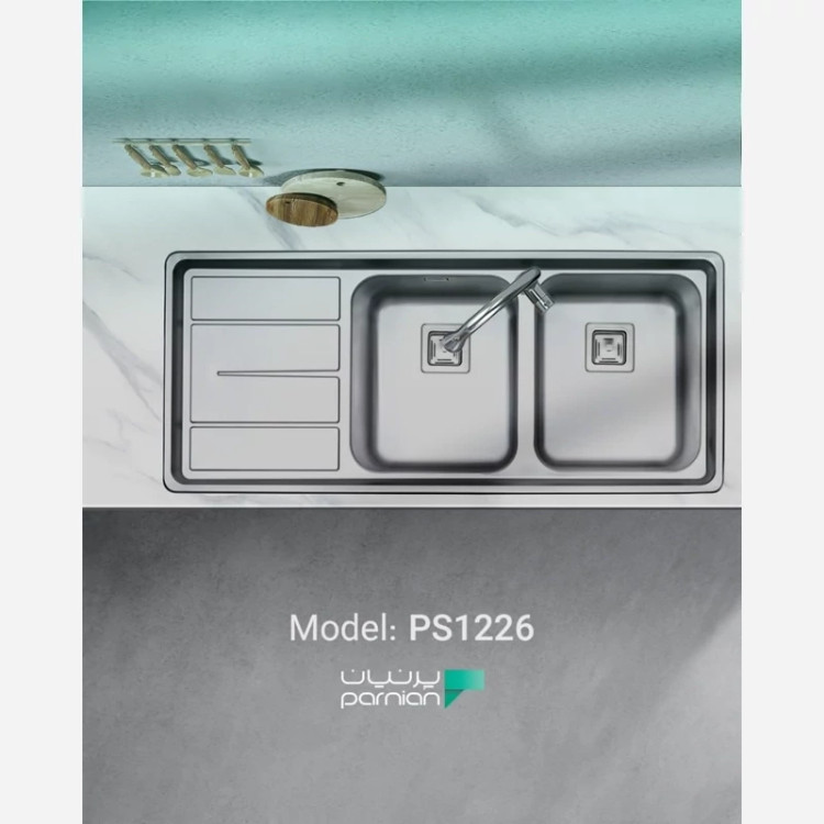 💚پرنیان استیل 💚 فروش کلیه محصولات پرنیان استیل به صورت عمده و خرده برند پرنیان استیل برندی شناخته شده در بازار ایران و یکی از بهترین تولید کننده های محصولات آشپزخانه با ده سال ضمانت و بهترین متریال موجود در دنیا سینک پرنیان مدل PS 1226 10سال ضمانت ✅ نوع سینک: فانتزی توکار ابعاد: 53*120 سانتی متر زاویه لگن: R60 عمق لگن: 20 سانتیمتر عمق سینی: 3.8 سانتی متر ضخامت ورق: 0.8 میلیمتر داراى عایق صدا، نوار آبندی PU و بست باکیفیت استفاده از استیل 8-18 ضد زنگ لوازم جانبی: سیفون، مایع پولیش استیل، تخته ساطوری پلاستیکی، سبد پلاستیکی، توری تفاله گیر استیل و پیشبند