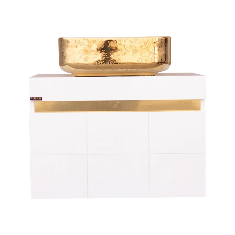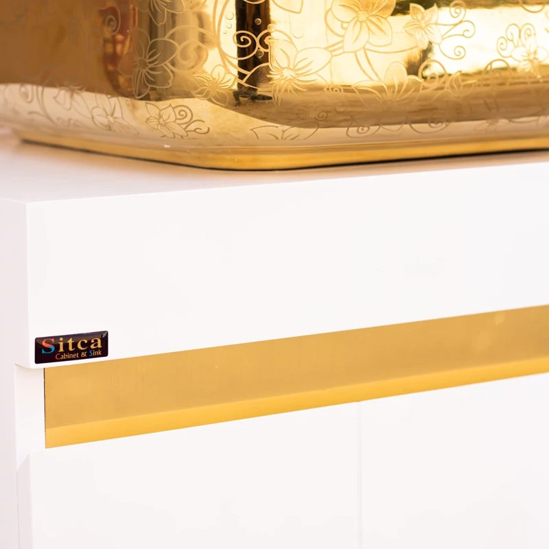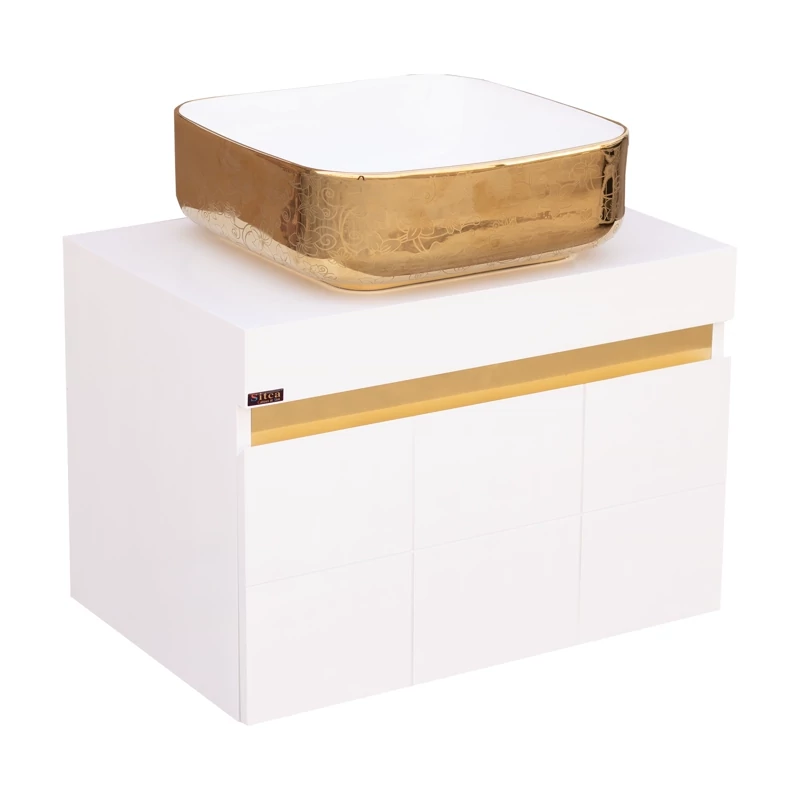 ست کابينت و روشويي سیتکا مدل WR-cot009 روکار به رنگ سفید طلا می باشد که توسط برند سيتکا با سالها تجربه در ساخت سینک و کابينت روشويي هاي لوکس و استاندارد توليد شده است .اين محصول از دو قسمت ساخته شده است .قسمت کابينت کلیه اجزا آن از جنس pvc شانزده میل بوده و قسمت روشويي آن از جنس چینی کوتینگ شده خارجی مي باشد.اين نوع از روشوييها در دسته کالاهاي لوکس ساختماني قرار ميگيرند .مشخصههاي بارز اين محصولات ضدآب و ضد رطوبت بودن و تنوع رنگي بسيار بالاي آن هاست. يراق آلات اين محصول استيل بوده و در محيط مرطوب زنگ نمي زند. کاسه روشويي cot یک ;کاسه روکار می باشد .در حال حاضر پرفروش ترين کاسه روشويي هايي که مورد استقبال مردم واقع مي شوند، مدل هاي روشويي روکار و یک تیکه مي باشند.لازم به ذکر است شيرالات قابل نصب براي اين محصول شير روشويي بایه بلند و شیر الات توکار دیواری میباشد.