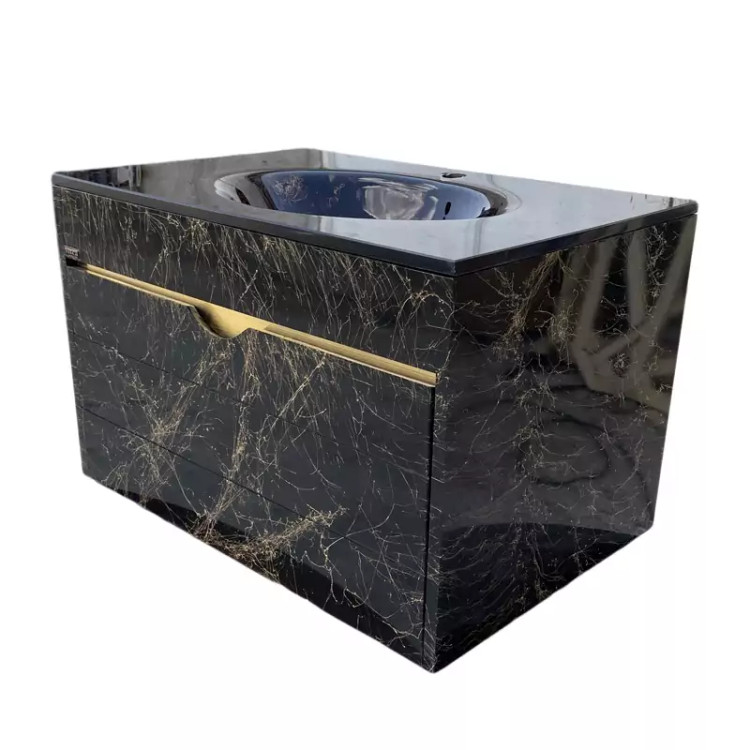 ست کابينت و روشويي سیتکا مدل GL-003/60 توکار به رنگ مشکی با رگه های طلائی می باشد که توسط برند سيتکا با سالها تجربه در ساخت سینک و کابينت روشويي هاي لوکس و استاندارد توليد شده است .اين محصول از دو قسمت ساخته شده است .قسمت کابينت آن از جنس pvc بوده و قسمت روشويي آن از جنس شیشه سکوریت نشکن مي باشد.اين نوع از روشوييها در دسته کالاهاي لوکس ساختماني قرار ميگيرند .مشخصههاي بارز اين محصولات ضدآب و ضد رطوبت بودن و تنوع رنگي بسيار بالاي آن هاست. يراق آلات اين محصول استيل بوده و در محيط مرطوب زنگ نمي زند. کاسه روشويي GL-003/60 بصورت یک صفحه کامل و توکار می باشد .در حال حاضر پرفروش ترين کاسه روشويي هايي که مورد استقبال مردم واقع مي شوند، مدل هاي روشويي گرد و یک تیکه مي باشند. شیشه ای بودن کاسه این محصول باعث شستشوي راحت و حفظ بهداشت سطح روشويي و جلوگيري از آسيب مواد شوينده قوي به بدنه آن مي شود .لازم به ذکر است شيرالات قابل نصب براي اين محصول از هر نوع شير روشويي می تواند باشد.نکته مهم در نصب این مدل از روشویی های شیشه ای هنگام نصب و وصل کردن شیشه به کابینت باید از چسب مخصوص اینه استفاده کنید و از زدن چسب آکواریم به شیشه برای چسباندن آن به بدنه روشویی جدا خودداری کنید و همچنین در موقع چسباندن زیراب تخلیه به جاه نیز از چسب مخصوص شیشه استفاده کنید در غیر این صورت آسیب جدی به زنگ شیشه خواهید زد