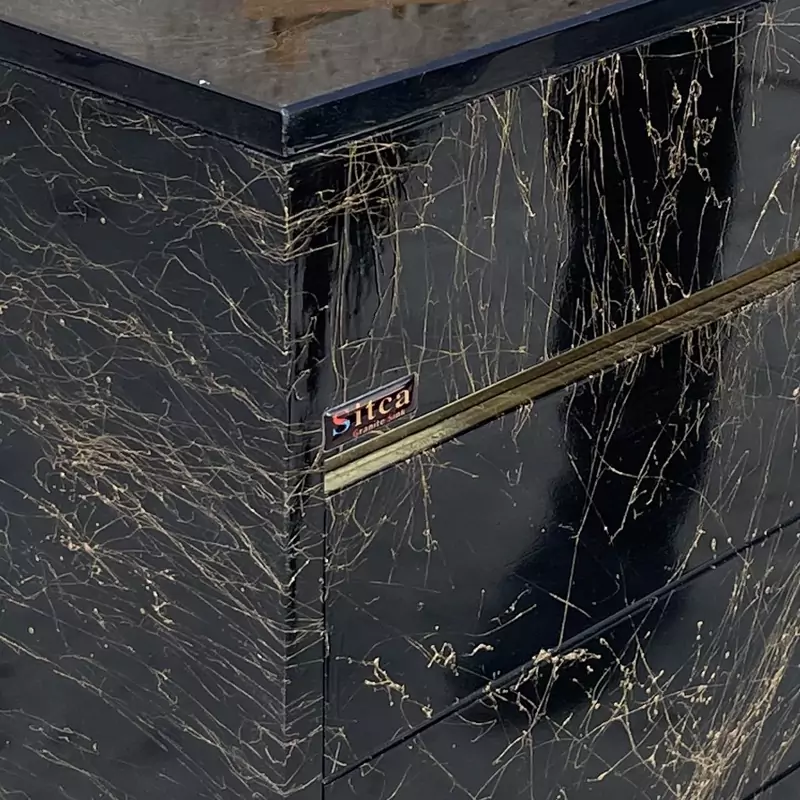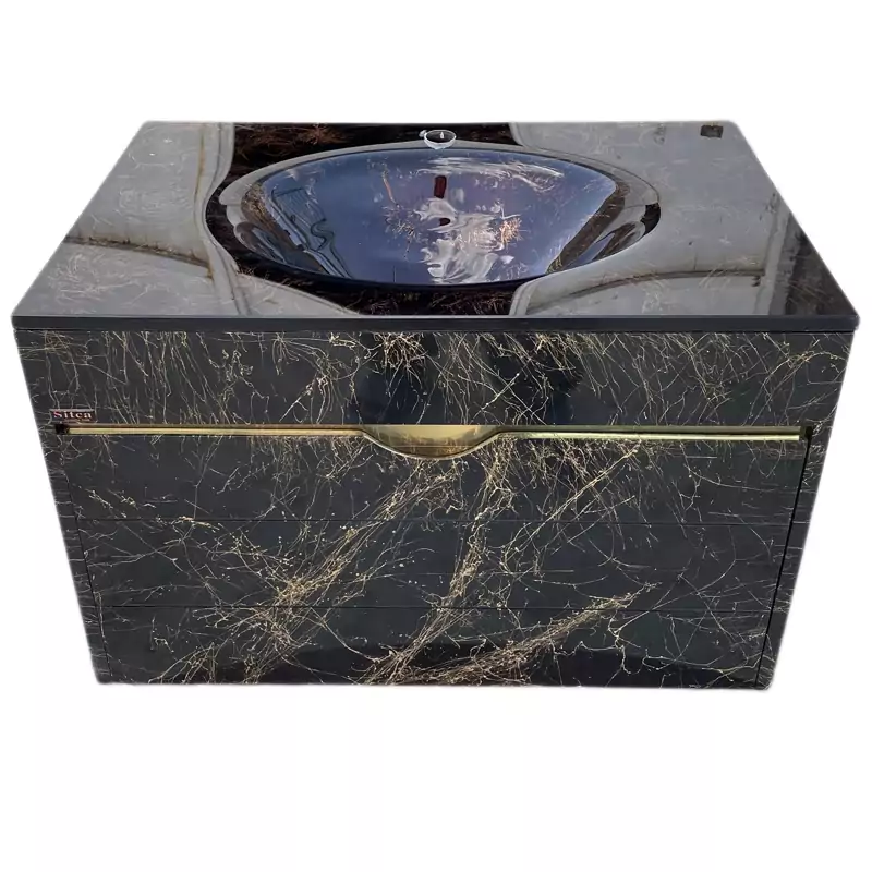 ست کابينت و روشويي سیتکا مدل GL-003/60 توکار به رنگ مشکی با رگه های طلائی می باشد که توسط برند سيتکا با سالها تجربه در ساخت سینک و کابينت روشويي هاي لوکس و استاندارد توليد شده است .اين محصول از دو قسمت ساخته شده است .قسمت کابينت آن از جنس pvc بوده و قسمت روشويي آن از جنس شیشه سکوریت نشکن مي باشد.اين نوع از روشوييها در دسته کالاهاي لوکس ساختماني قرار ميگيرند .مشخصههاي بارز اين محصولات ضدآب و ضد رطوبت بودن و تنوع رنگي بسيار بالاي آن هاست. يراق آلات اين محصول استيل بوده و در محيط مرطوب زنگ نمي زند. کاسه روشويي GL-003/60 بصورت یک صفحه کامل و توکار می باشد .در حال حاضر پرفروش ترين کاسه روشويي هايي که مورد استقبال مردم واقع مي شوند، مدل هاي روشويي گرد و یک تیکه مي باشند. شیشه ای بودن کاسه این محصول باعث شستشوي راحت و حفظ بهداشت سطح روشويي و جلوگيري از آسيب مواد شوينده قوي به بدنه آن مي شود .لازم به ذکر است شيرالات قابل نصب براي اين محصول از هر نوع شير روشويي می تواند باشد.نکته مهم در نصب این مدل از روشویی های شیشه ای هنگام نصب و وصل کردن شیشه به کابینت باید از چسب مخصوص اینه استفاده کنید و از زدن چسب آکواریم به شیشه برای چسباندن آن به بدنه روشویی جدا خودداری کنید و همچنین در موقع چسباندن زیراب تخلیه به جاه نیز از چسب مخصوص شیشه استفاده کنید در غیر این صورت آسیب جدی به زنگ شیشه خواهید زد